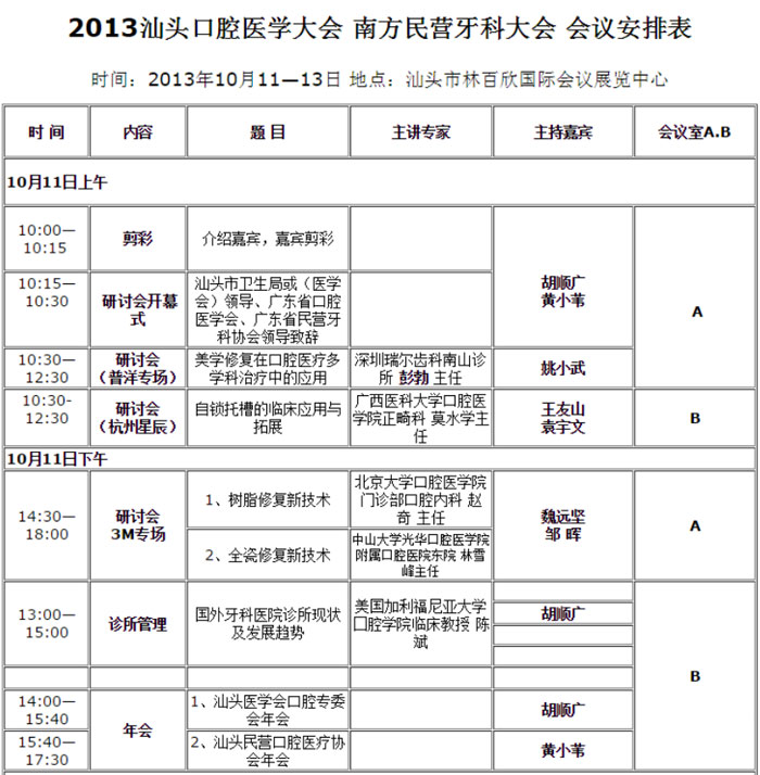 2013南方(汕头)口腔医学大会会议安排通知