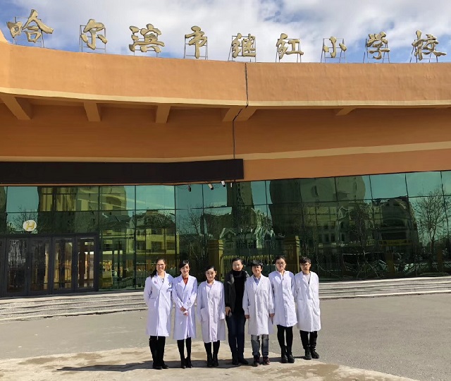 近日,由哈尔滨医科大学口腔医学院口腔预防保健科张晓丹老师带队,一行七人走进哈尔滨市继红小学校,为千余名学龄儿童免费检查牙齿、复查窝沟封闭情况并为儿童建立口腔健康档案。