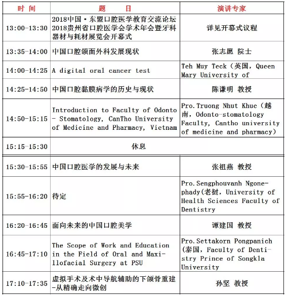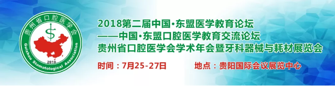 为助力“第二届中国·东盟医学教育论坛”的召开,“中国·东盟口腔医学教育交流论坛”将与“贵州省口腔医学会2018学术年会”、“贵州省牙科器械与耗材展览会”在贵阳国际会议展览中心同期举办,7月25-27日,会议时间2.5天。